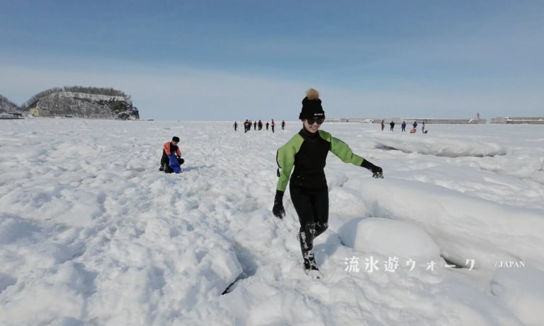 流冰漫步活動時間只有每年的二月初到三月中下旬,且會依照實際流冰狀況調整出團時間,建議大家隨時到活動官網確認出團情形。我們報名的是位在宇登呂的戶外活動公司哥吉拉岩觀光的流冰漫步活動,活動時間約 1.5 小時,包含在流冰上玩耍約 1 小時。